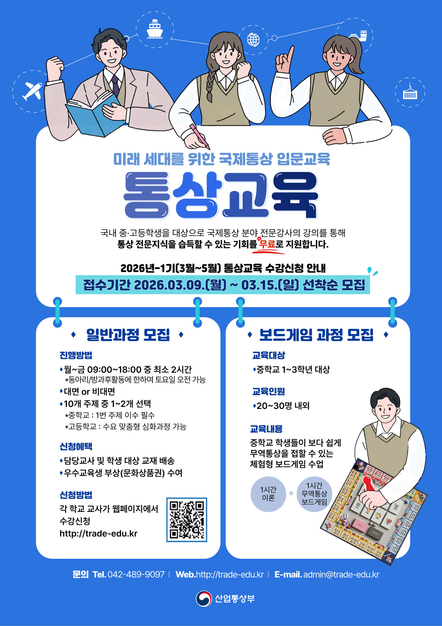 미래의 글로벌 통상 리더를 양성하는 '2026년 제1기 중·고등학생 대상 통상교육 정규과정' 모집을 다음과 같이 실시합니다.